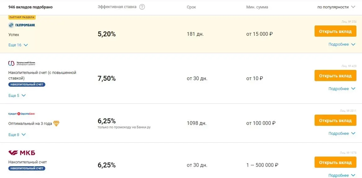 Зато у этого инструмента есть плюс — он приносит гарантированный доход. Вклады до 1,4 млн ₽ застрахованы государством. И если с банком что-то случится, вам все равно вернут деньги.