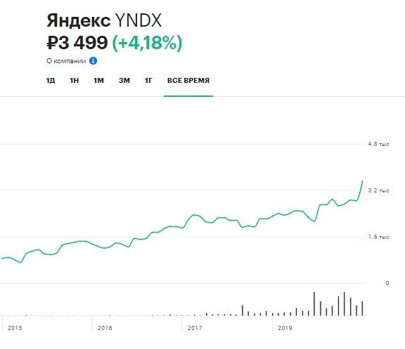 Посмотрите на график цен акций «Яндекса» — они растут в среднем на 44% в год