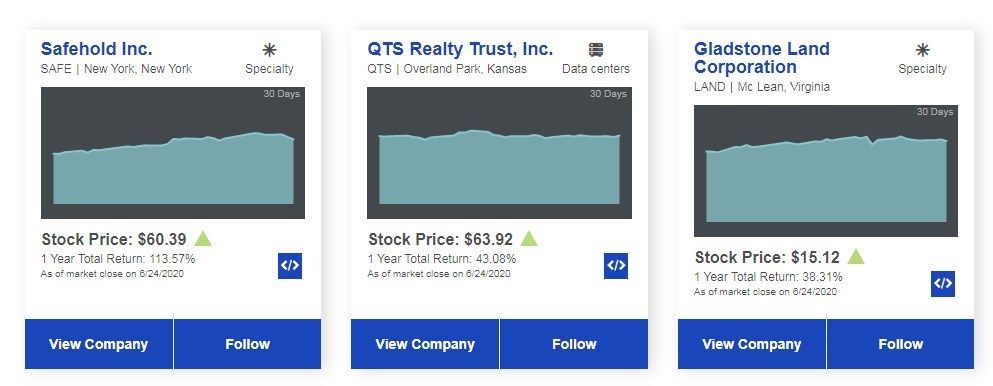 Посмотрите на доходность некоторых REIT по данным Национальной ассоциации риелторов США