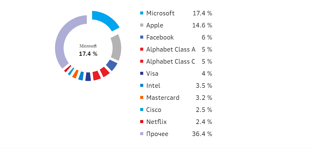 Вот структура одного из инвестиционных фондов — он вкладывается в множество акций США