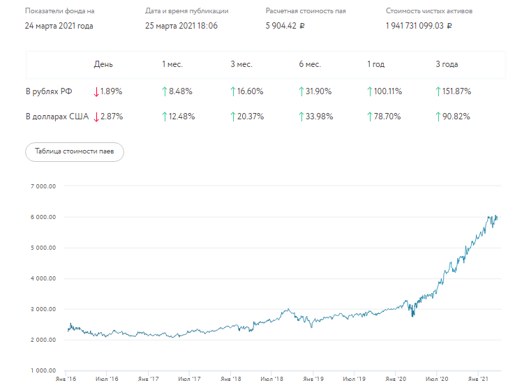 Пример фонда от управляющей компании «Открытие»: за год стоимость пая выросла более, чем на 100%