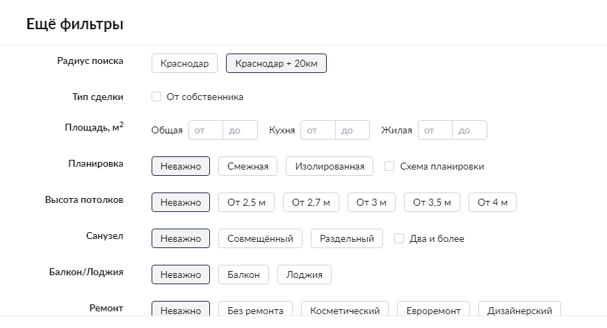 На «Циане», например, есть такие фильтры — заполните их как можно подробнее, и система покажет самые похожие объекты