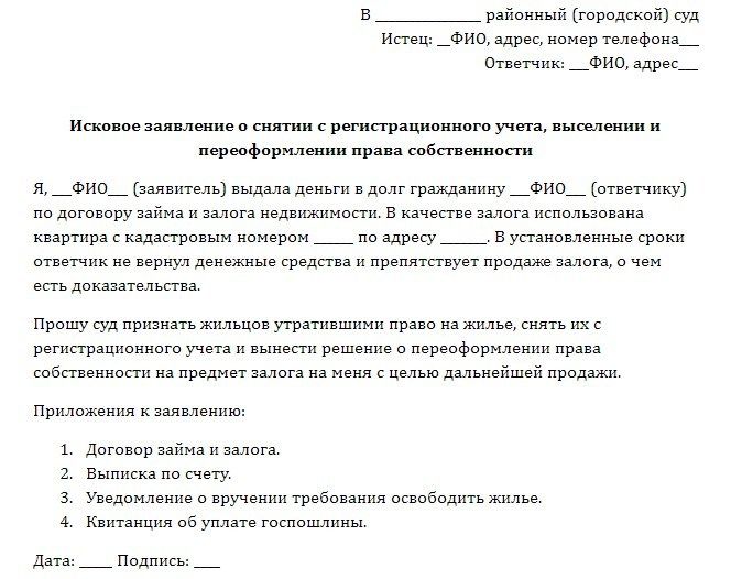 Если случилось так, что вы давали человеку деньги в долг под залог и он их не вернул, надо продавать предмет залога — недвижимость. Прежде чем сделать это, нужно выписать всех жильцов из квартиры и переоформить ее на себя. И если должник не хочет съезжать и регистрировать сделку в Росреестре добровольно, придется обращаться в суд.
