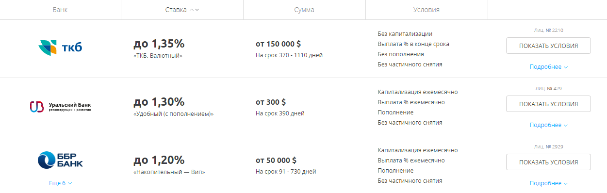 Процентная ставка по валютным вкладам очень небольшая: для депозитов в евро — до 0,60%, для долларов — до 1,35%. Кажется, что это слишком мало, но это — реальная прибыль, которую вы получите без инфляции российского рубля.