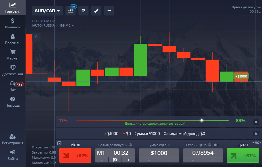 • выбираете, куда пойдет курс: вверх или вниз, или достигнет ли он определенной суммы;