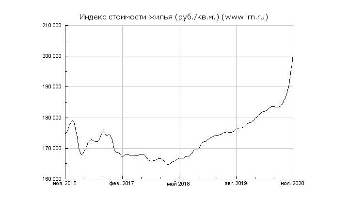 Посмотрите на график изменения стоимости квадратного метра в Москве: за пять лет цены выросли, хотя в период 2015–2018 года держались примерно на одном уровне