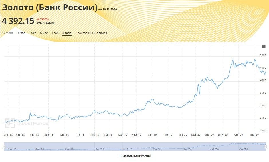 Посмотрите на график стоимости грамма золота за последние три года