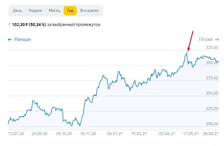 Так происходит всегда — акции «Сбербанка» дорожали до 10 мая: последней даты покупки для вхождения в реестр акционеров. Потом их стоимость снизилась